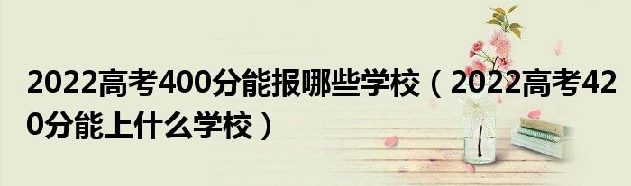 大家好,小高來為大家解答以上問題。2022高考400分能報哪些學校,2022高考420分能上什么學校很多人還不知道,現(xiàn)在讓我們一起來看看吧!