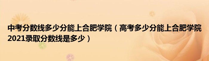 大家好,小高來為大家解答以上問題。中考分?jǐn)?shù)線多少分能上合肥學(xué)院,高考多少分能上合肥學(xué)院2021錄取分?jǐn)?shù)線是多少很多人還不知道,現(xiàn)在讓我們一起來看看吧!