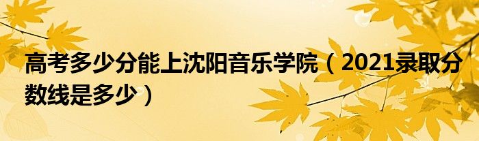大家好,小高來(lái)為大家解答以上問(wèn)題。高考多少分能上沈陽(yáng)音樂(lè)學(xué)院,2021錄取分?jǐn)?shù)線是多少很多人還不知道,現(xiàn)在讓我們一起來(lái)看看吧!