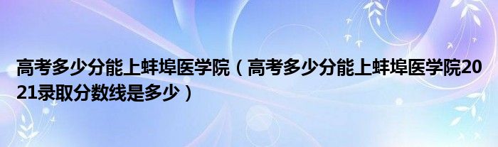 大家好,小高來為大家解答以上問題。高考多少分能上蚌埠醫(yī)學(xué)院,高考多少分能上蚌埠醫(yī)學(xué)院2021錄取分?jǐn)?shù)線是多少很多人還不知道,現(xiàn)在讓我們一起來看看吧!