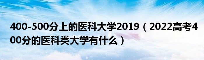 大家好,小高來為大家解答以上問題。400-500分上的醫(yī)科大學(xué)2019,2022高考400分的醫(yī)科類大學(xué)有什么很多人還不知道,現(xiàn)在讓我們一起來看看吧!