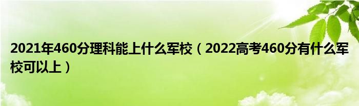大家好,小高來(lái)為大家解答以上問(wèn)題。2021年460分理科能上什么軍校,2022高考460分有什么軍校可以上很多人還不知道,現(xiàn)在讓我們一起來(lái)看看吧!