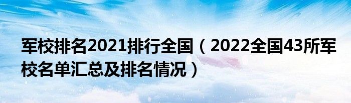 大家好,小高來(lái)為大家解答以上問(wèn)題。軍校排名2021排行全國(guó),2022全國(guó)43所軍校名單匯總及排名情況很多人還不知道,現(xiàn)在讓我們一起來(lái)看看吧!