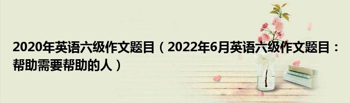 大家好,小高來(lái)為大家解答以上問(wèn)題。2020年英語(yǔ)六級(jí)作文題目,2022年6月英語(yǔ)六級(jí)作文題目:幫助需要幫助的人很多人還不知道,現(xiàn)在讓我們一起來(lái)看看吧!