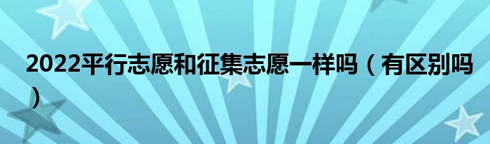大家好,小高來為大家解答以上問題。2022平行志愿和征集志愿一樣嗎,有區(qū)別嗎很多人還不知道,現(xiàn)在讓我們一起來看看吧!