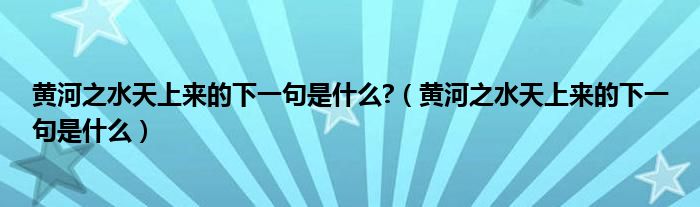 大家好,小高來(lái)為大家解答以上問(wèn)題。黃河之水天上來(lái)的下一句是什么?,黃河之水天上來(lái)的下一句是什么很多人還不知道,現(xiàn)在讓我們一起來(lái)看看吧!
