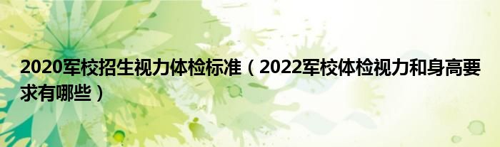 大家好,小高來為大家解答以上問題。2020軍校招生視力體檢標準,2022軍校體檢視力和身高要求有哪些很多人還不知道,現在讓我們一起來看看吧!