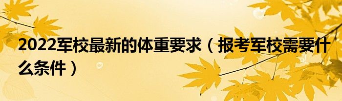 大家好,小高來為大家解答以上問題。2022軍校最新的體重要求,報考軍校需要什么條件很多人還不知道,現(xiàn)在讓我們一起來看看吧!