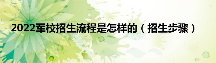 大家好,小高來(lái)為大家解答以上問(wèn)題。2022軍校招生流程是怎樣的,招生步驟很多人還不知道,現(xiàn)在讓我們一起來(lái)看看吧!