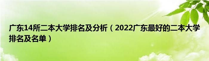 大家好,小高來為大家解答以上問題。廣東14所二本大學(xué)排名及分析,2022廣東最好的二本大學(xué)排名及名單很多人還不知道,現(xiàn)在讓我們一起來看看吧!