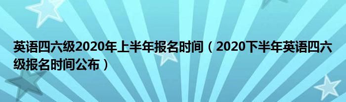 大家好,小高來為大家解答以上問題。英語四六級2020年上半年報名時間,2020下半年英語四六級報名時間公布很多人還不知道,現(xiàn)在讓我們一起來看看吧!