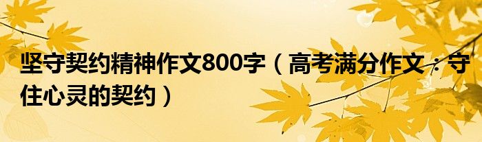 大家好,小高來為大家解答以上問題。堅守契約精神作文800字,高考滿分作文:守住心靈的契約很多人還不知道,現(xiàn)在讓我們一起來看看吧!