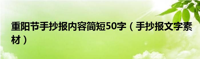 大家好,小高來為大家解答以上問題。重陽節(jié)手抄報(bào)內(nèi)容簡(jiǎn)短50字,手抄報(bào)文字素材很多人還不知道,現(xiàn)在讓我們一起來看看吧!