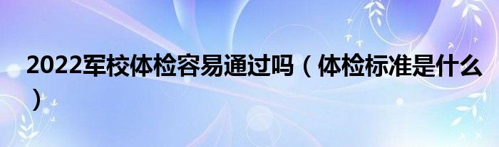 大家好,小高來為大家解答以上問題。2022軍校體檢容易通過嗎,體檢標(biāo)準(zhǔn)是什么很多人還不知道,現(xiàn)在讓我們一起來看看吧!