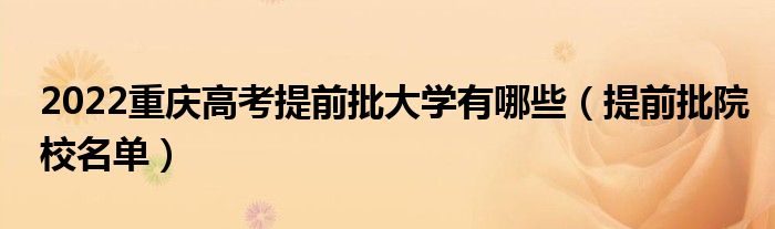 大家好,小高來(lái)為大家解答以上問(wèn)題。2022重慶高考提前批大學(xué)有哪些,提前批院校名單很多人還不知道,現(xiàn)在讓我們一起來(lái)看看吧!