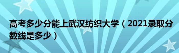 大家好,小高來(lái)為大家解答以上問(wèn)題。高考多少分能上武漢紡織大學(xué),2021錄取分?jǐn)?shù)線是多少很多人還不知道,現(xiàn)在讓我們一起來(lái)看看吧!