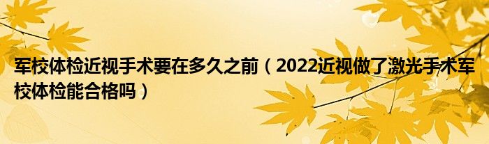 大家好,小高來為大家解答以上問題。軍校體檢近視手術(shù)要在多久之前,2022近視做了激光手術(shù)軍校體檢能合格嗎很多人還不知道,現(xiàn)在讓我們一起來看看吧!