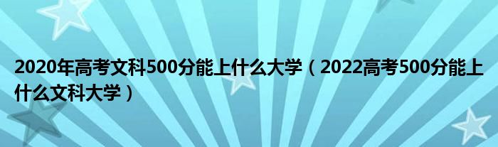 大家好,小高來(lái)為大家解答以上問(wèn)題。2020年高考文科500分能上什么大學(xué),2022高考500分能上什么文科大學(xué)很多人還不知道,現(xiàn)在讓我們一起來(lái)看看吧!