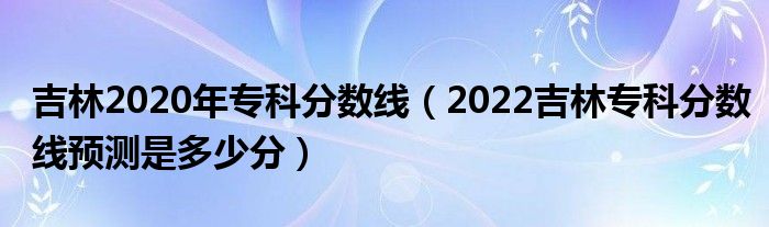大家好,小高來為大家解答以上問題。吉林2020年??品?jǐn)?shù)線,2022吉林專科分?jǐn)?shù)線預(yù)測是多少分很多人還不知道,現(xiàn)在讓我們一起來看看吧!