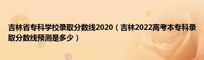 大家好,小高來為大家解答以上問題。吉林省專科學(xué)校錄取分?jǐn)?shù)線2020,吉林2022高考本??其浫》?jǐn)?shù)線預(yù)測是多少很多人還不知道,現(xiàn)在讓我們一起來看看吧!