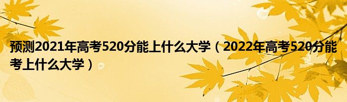 大家好,小高來為大家解答以上問題。預測2021年高考520分能上什么大學,2022年高考520分能考上什么大學很多人還不知道,現(xiàn)在讓我們一起來看看吧!