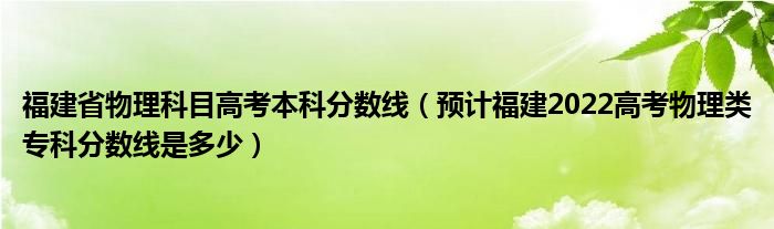 大家好,小高來(lái)為大家解答以上問(wèn)題。福建省物理科目高考本科分?jǐn)?shù)線,預(yù)計(jì)福建2022高考物理類??品?jǐn)?shù)線是多少很多人還不知道,現(xiàn)在讓我們一起來(lái)看看吧!