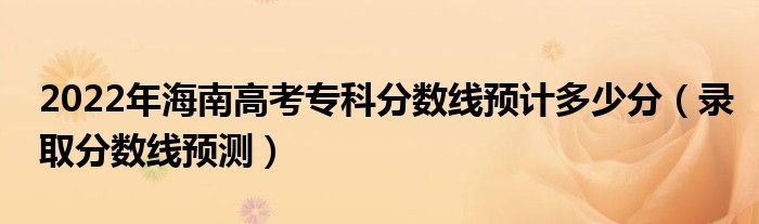 大家好,小高來為大家解答以上問題。2022年海南高考專科分?jǐn)?shù)線預(yù)計(jì)多少分,錄取分?jǐn)?shù)線預(yù)測很多人還不知道,現(xiàn)在讓我們一起來看看吧!
