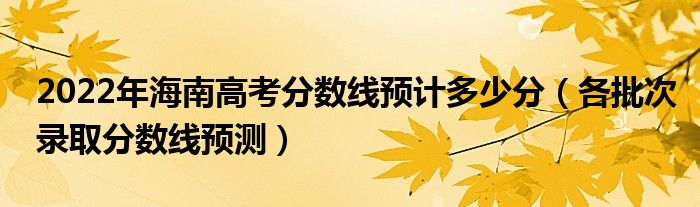 大家好,小高來為大家解答以上問題。2022年海南高考分?jǐn)?shù)線預(yù)計多少分,各批次錄取分?jǐn)?shù)線預(yù)測很多人還不知道,現(xiàn)在讓我們一起來看看吧!