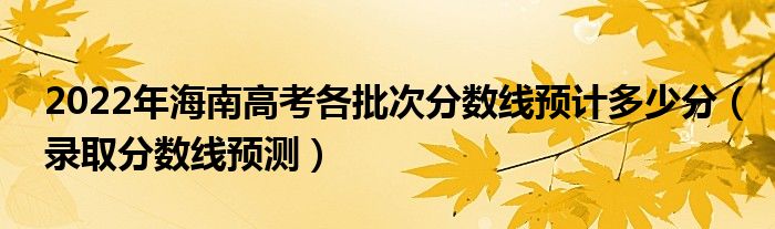 大家好,小高來為大家解答以上問題。2022年海南高考各批次分?jǐn)?shù)線預(yù)計(jì)多少分,錄取分?jǐn)?shù)線預(yù)測很多人還不知道,現(xiàn)在讓我們一起來看看吧!