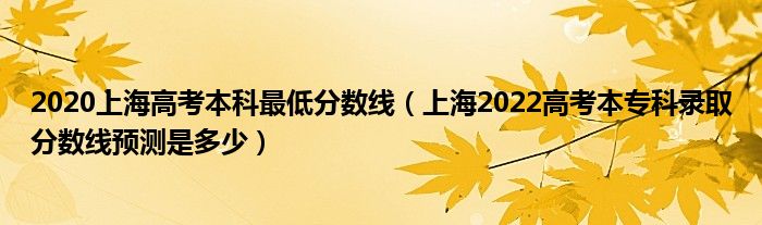 大家好,小高來(lái)為大家解答以上問(wèn)題。2020上海高考本科最低分?jǐn)?shù)線,上海2022高考本專(zhuān)科錄取分?jǐn)?shù)線預(yù)測(cè)是多少很多人還不知道,現(xiàn)在讓我們一起來(lái)看看吧!