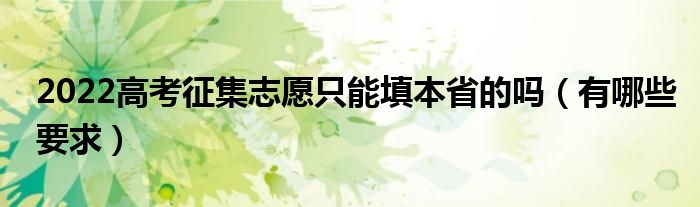 大家好,小高來為大家解答以上問題。2022高考征集志愿只能填本省的嗎,有哪些要求很多人還不知道,現(xiàn)在讓我們一起來看看吧!