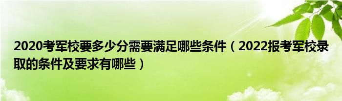 大家好,小高來為大家解答以上問題。2020考軍校要多少分需要滿足哪些條件,2022報(bào)考軍校錄取的條件及要求有哪些很多人還不知道,現(xiàn)在讓我們一起來看看吧!