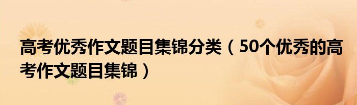 大家好,小高來為大家解答以上問題。高考優(yōu)秀作文題目集錦分類,50個優(yōu)秀的高考作文題目集錦很多人還不知道,現(xiàn)在讓我們一起來看看吧!