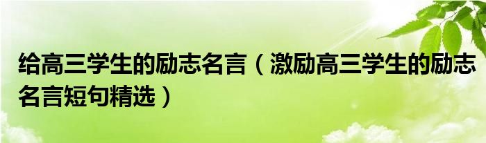 大家好,小高來為大家解答以上問題。給高三學(xué)生的勵志名言,激勵高三學(xué)生的勵志名言短句精選很多人還不知道,現(xiàn)在讓我們一起來看看吧!