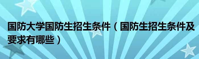 大家好,小高來為大家解答以上問題。國防大學(xué)國防生招生條件,國防生招生條件及要求有哪些很多人還不知道,現(xiàn)在讓我們一起來看看吧!