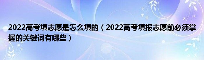 大家好,小高來為大家解答以上問題。2022高考填志愿是怎么填的,2022高考填報志愿前必須掌握的關(guān)鍵詞有哪些很多人還不知道,現(xiàn)在讓我們一起來看看吧!