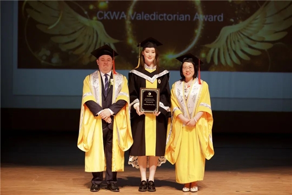 為獎(jiǎng)勵(lì)畢業(yè)生們?nèi)〉玫膬?yōu)異成績(jī),中學(xué)部校長(zhǎng)趙鈺蓮女士和James Craig先生為畢業(yè)生們進(jìn)行頒獎(jiǎng)。