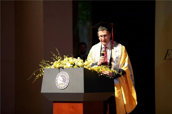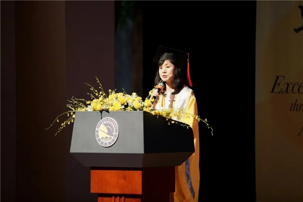 教育帶給人的影響是非常深遠(yuǎn)的,是超越知識(shí)和能力的。今天,我選擇凱文品格“智慧”作為我畢業(yè)典禮演講的主題。因?yàn)橹腔鄄坏扔谥巧?、不等于知識(shí)、不等于經(jīng)驗(yàn),希望你們始終好奇,始終學(xué)習(xí),從而在面對(duì)未來的挑戰(zhàn)中,解決問題、打破規(guī)則,在創(chuàng)新中發(fā)展。”