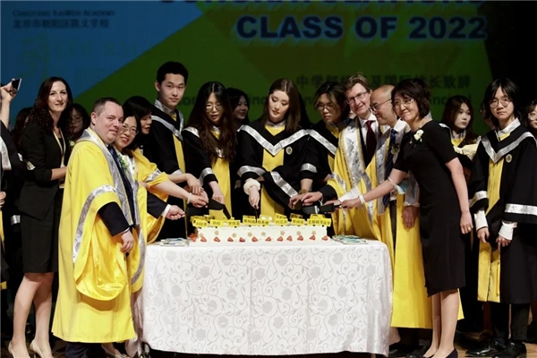 Andrew Leale校長(zhǎng)為畢業(yè)生們頒發(fā)畢業(yè)證書,徐濤校長(zhǎng)為畢業(yè)生們進(jìn)行撥穗,趙鈺蓮校長(zhǎng)和James校長(zhǎng)邀請(qǐng)同學(xué)們一起享用畢業(yè)蛋糕,宣告他們從朝陽凱文正式畢業(yè)。
