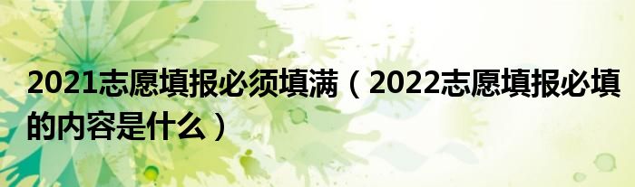 大家好,小高來為大家解答以上問題。2021志愿填報必須填滿,2022志愿填報必填的內(nèi)容是什么很多人還不知道,現(xiàn)在讓我們一起來看看吧!