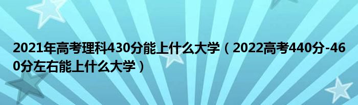 大家好,小高來(lái)為大家解答以上問(wèn)題。2021年高考理科430分能上什么大學(xué),2022高考440分-460分左右能上什么大學(xué)很多人還不知道,現(xiàn)在讓我們一起來(lái)看看吧!