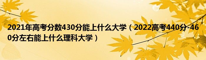大家好,小高來為大家解答以上問題。2021年高考分數430分能上什么大學,2022高考440分-460分左右能上什么理科大學很多人還不知道,現在讓我們一起來看看吧!