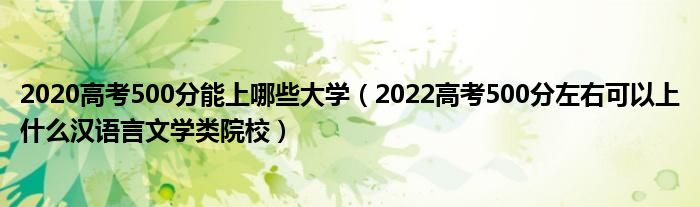 大家好,小高來(lái)為大家解答以上問(wèn)題。2020高考500分能上哪些大學(xué),2022高考500分左右可以上什么漢語(yǔ)言文學(xué)類院校很多人還不知道,現(xiàn)在讓我們一起來(lái)看看吧!