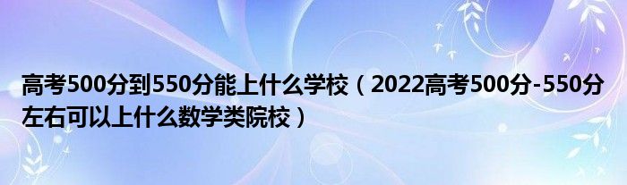 大家好,小高來為大家解答以上問題。高考500分到550分能上什么學(xué)校,2022高考500分-550分左右可以上什么數(shù)學(xué)類院校很多人還不知道,現(xiàn)在讓我們一起來看看吧!