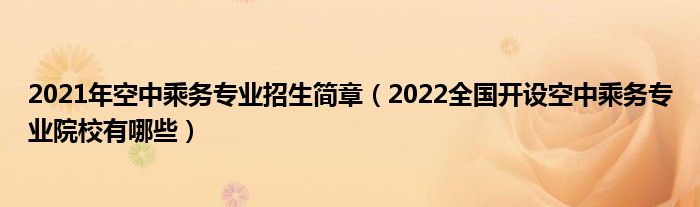 大家好,小高來為大家解答以上問題。2021年空中乘務(wù)專業(yè)招生簡章,2022全國開設(shè)空中乘務(wù)專業(yè)院校有哪些很多人還不知道,現(xiàn)在讓我們一起來看看吧!