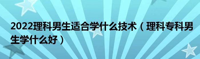 大家好,小高來(lái)為大家解答以上問(wèn)題。2022理科男生適合學(xué)什么技術(shù),理科??颇猩鷮W(xué)什么好很多人還不知道,現(xiàn)在讓我們一起來(lái)看看吧!