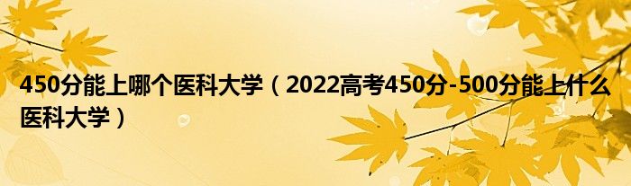 大家好,小高來為大家解答以上問題。450分能上哪個醫(yī)科大學(xué),2022高考450分-500分能上什么醫(yī)科大學(xué)很多人還不知道,現(xiàn)在讓我們一起來看看吧!