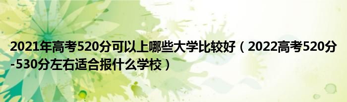大家好,小高來為大家解答以上問題。2021年高考520分可以上哪些大學比較好,2022高考520分-530分左右適合報什么學校很多人還不知道,現(xiàn)在讓我們一起來看看吧!