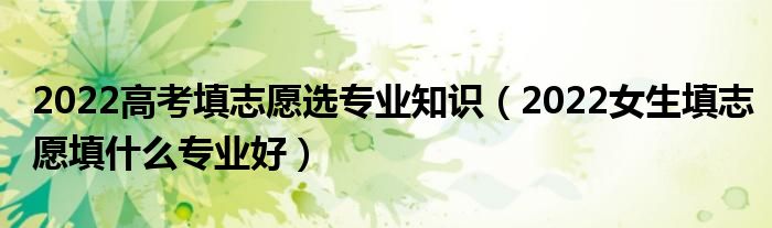 大家好,小高來(lái)為大家解答以上問(wèn)題。2022高考填志愿選專業(yè)知識(shí),2022女生填志愿填什么專業(yè)好很多人還不知道,現(xiàn)在讓我們一起來(lái)看看吧!
