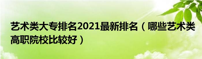 大家好,小高來(lái)為大家解答以上問(wèn)題。藝術(shù)類(lèi)大專(zhuān)排名2021最新排名,哪些藝術(shù)類(lèi)高職院校比較好很多人還不知道,現(xiàn)在讓我們一起來(lái)看看吧!